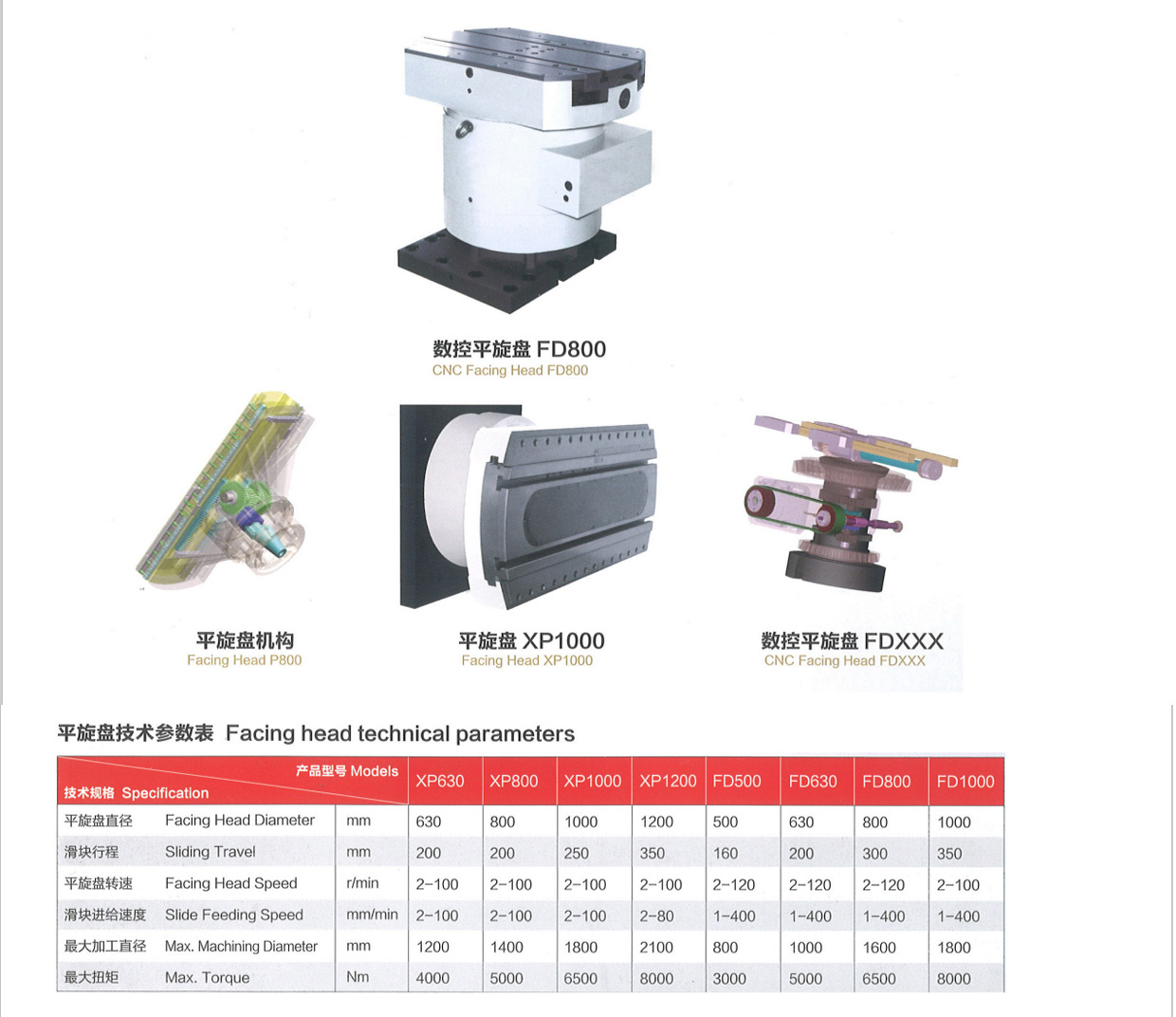 As being special accessories, facing head can be installed on Floor Type boring and milling machines, Gantry Type machine, and CNCmachining center to enlarge range of machine usage. The facing head consist of standard and CNC. CNC facing head is key part for multi-axes control and equipped with facing head machines are able to complete complex workpieces.
