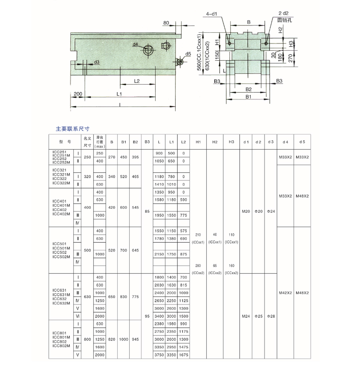 CC系列(liè),ICC系列側底座(zuò)用于安裝機(jī)械滑台或液(ye)壓滑台🙇♀️,并按(an)滑台行😄程分(fèn)型。ICC系列側底(di)座分爲1CCxx1和1CCxx2普(pu)通級及ICCxx1M和ICCxx2M精(jīng)密級,對位于(yu)普🌐通級和精(jīng)密級滑台。